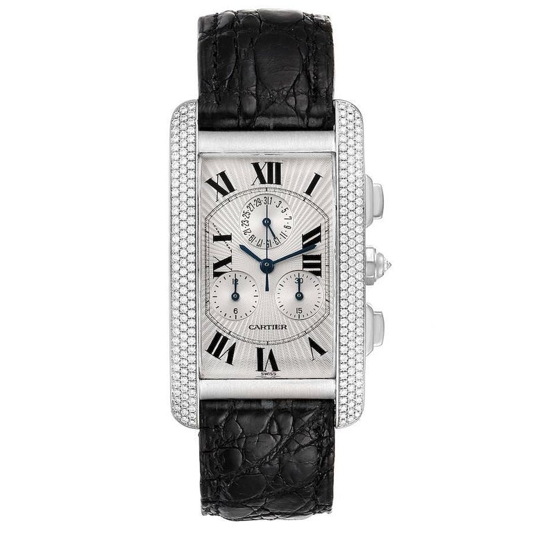 Cartier Tank Americaine Chronograph White Gold Diamond Mens Watch 2339 For Sale At 1stdibs